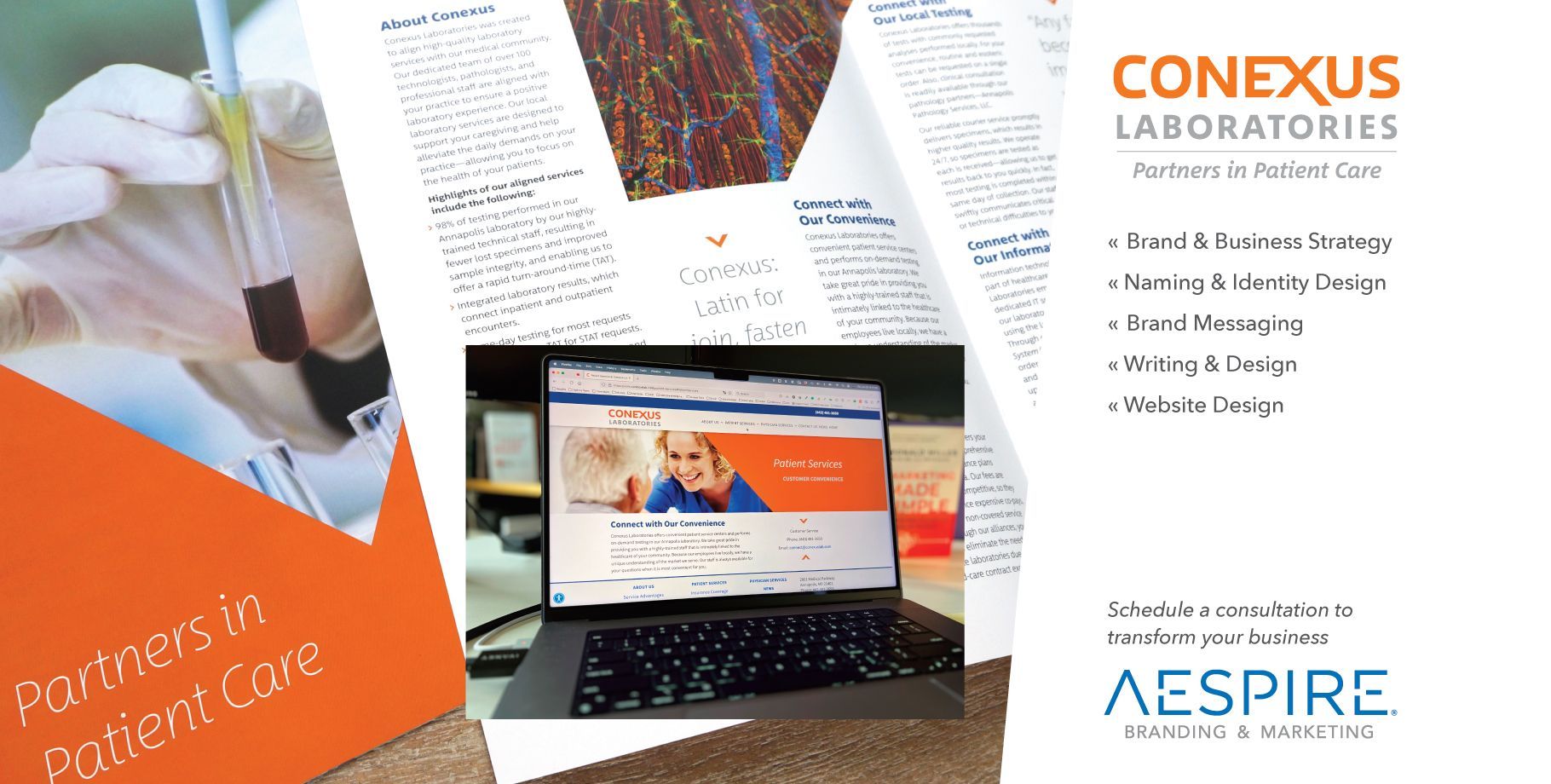 Aespire recommended choices but never dictated them. They were completely transparent with the rationale for the choices they offered and they listened to our input and used it to set the next course of direction. Not only did they help create our identity; they educated us about the process so that we would make better decisions.” — Suzanne Leshinskie, Laboratory Director